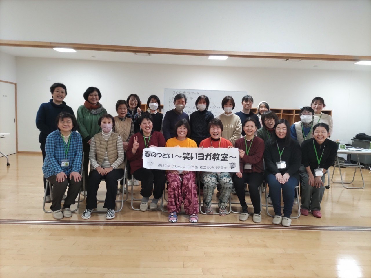 2月18日(火)、江角淳子さん、森ミノルさんの2名の講師をお迎えし、「春のつどい~笑いヨガ教室~」を開催しました。21名の参加がありました。